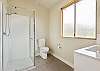 Main bedroom provides queen bed, walk in robe, ensuite with shower and w/c, and direct access to balcony. Offers ceiling fan and a/c.
