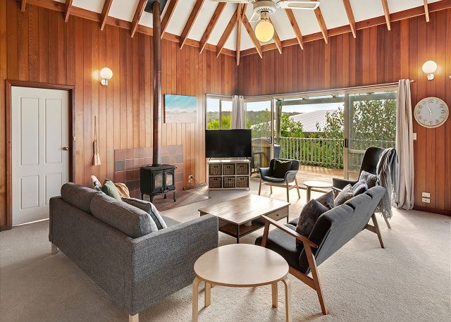 The wood fire in the living area will ensure cosy winter days and nights, as well as provide a delightful ambiance. Ceiling fans offer climate control in the warm summer months.