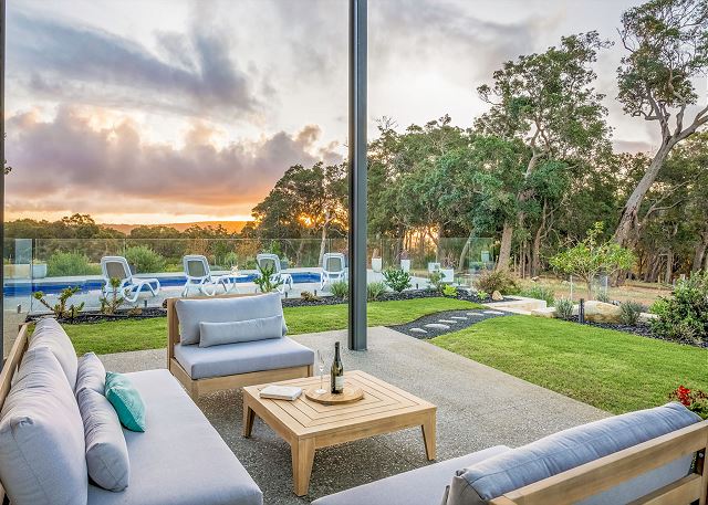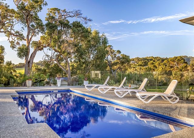 Stargaze is the ultimate tranquil retreat situated in rural Yallingup, showcasing stunning views. Boasting a spacious open plan kitchen, living and dining area that seamlessly flows out to the expansive alfresco, pool and spa area; and beyond to the green lawns and gardens.