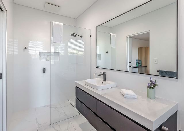 Please note: All full bathrooms in this home are in the ensuites to Bed 1, 3 and 4. Bed 2 with the 2 x king single beds has access to the powder room, however will need to utilise a shower in one of the ensuites.