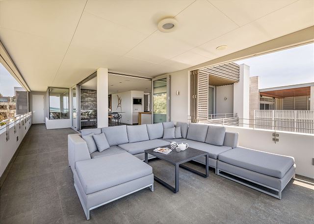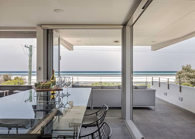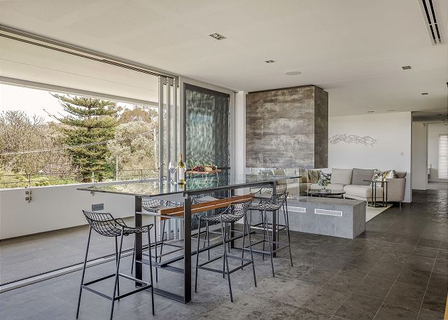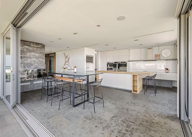 Dining area includes 8-seater high table in prime spot to admire the ocean views.