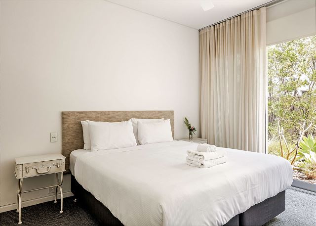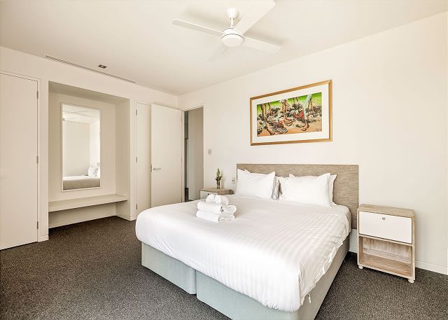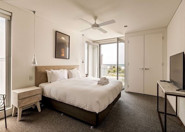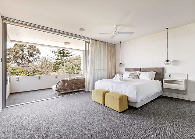The enormous and opulent Master Suite offers a king bed, smart TV, and a walk-through robe with luxe ensuite that provides a bathtub, shower and dual vanity with separate w/c. Also includes private balcony access, the perfect place to enjoy a morning coffee watching the sunrise over the bay.