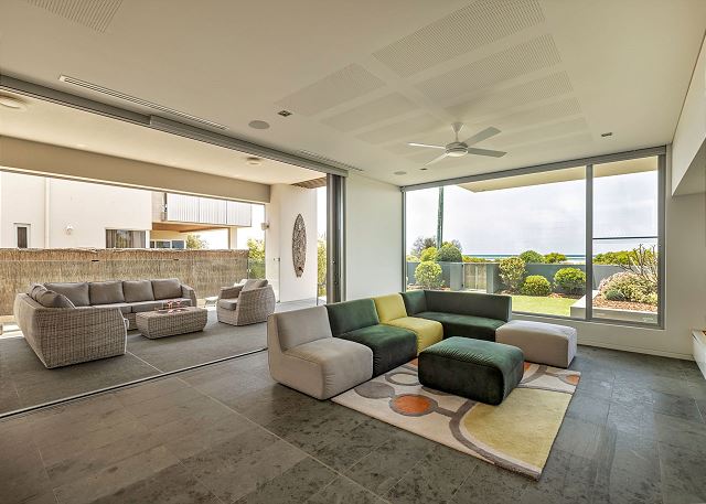A highlight of this home is the magnificent outdoor entertaining area that can be accessed from the games zone and hallway on the lower level of the home. This undercover space offers a built-in gas BBQ, comfy outdoor seating, grassed area for the kids to play and a sparkling below ground plunge pool; all with beachfront views of Geographe Bay. Enjoy magical summer evenings indulging in local wines and freshly cooked meals, whilst gazing over picturesque Geographe Bay.